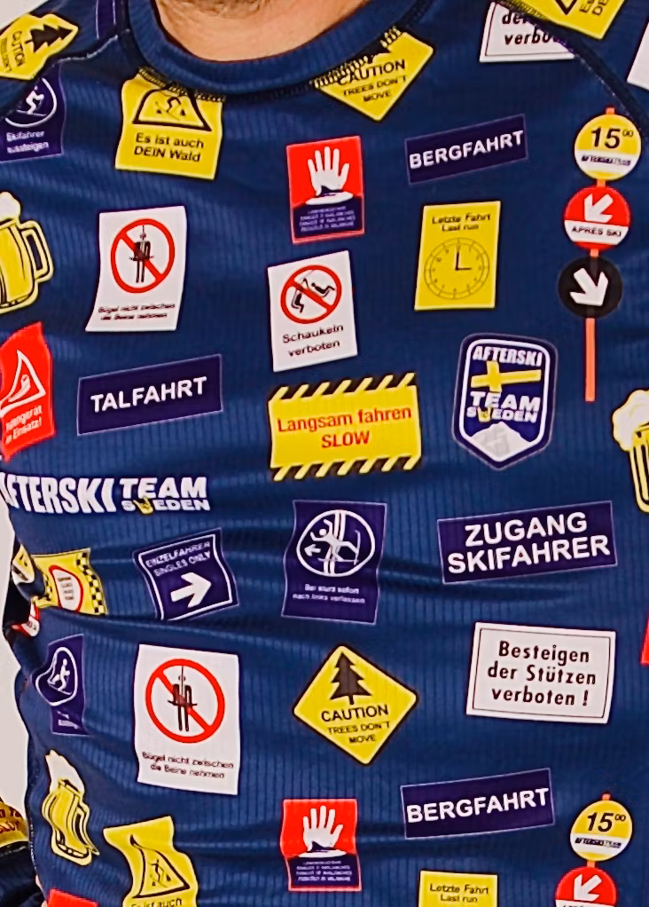 Achtung skidunderställ är för alla högpresterande afterskiproffs. Med inspiration hämtade från främst Österrikiska skidskyltar skapas ett roligty mönster du kan bära med stolthet och höra folks avund på vinterns alla afterskier.