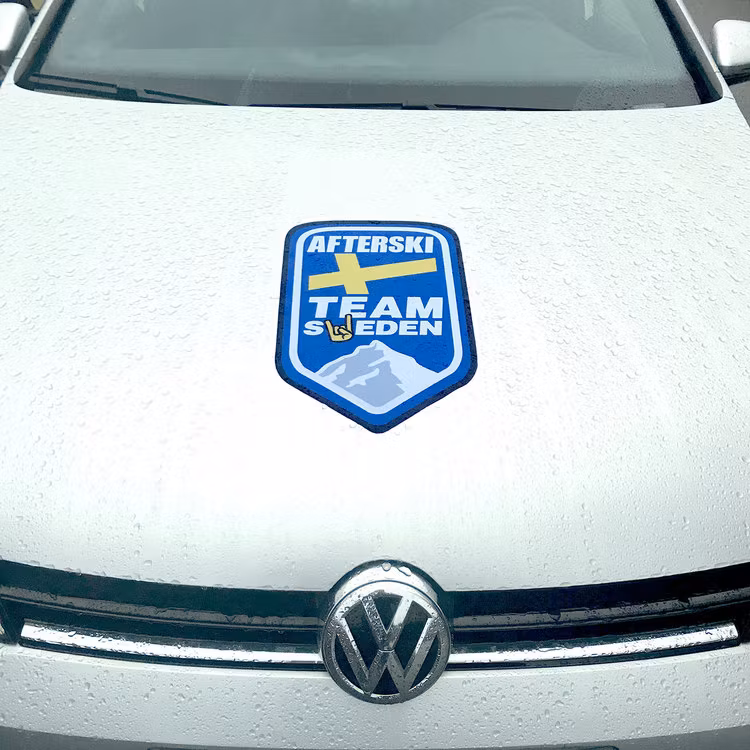 Nu kan du på några sekunder göra din egen bil till en äkta landslagsbil när du åker till fjällen. Denna stora logotype med magnetisk baksida fäster perfekt på bildörrar och motorhuvar utan att skada lacken. Observera att magneten riskerar att trilla av i höga hastigheter, därför rekommenderar vi att man monterar dessa strax innan ankomst och majestätiskt glider in på skidorten.