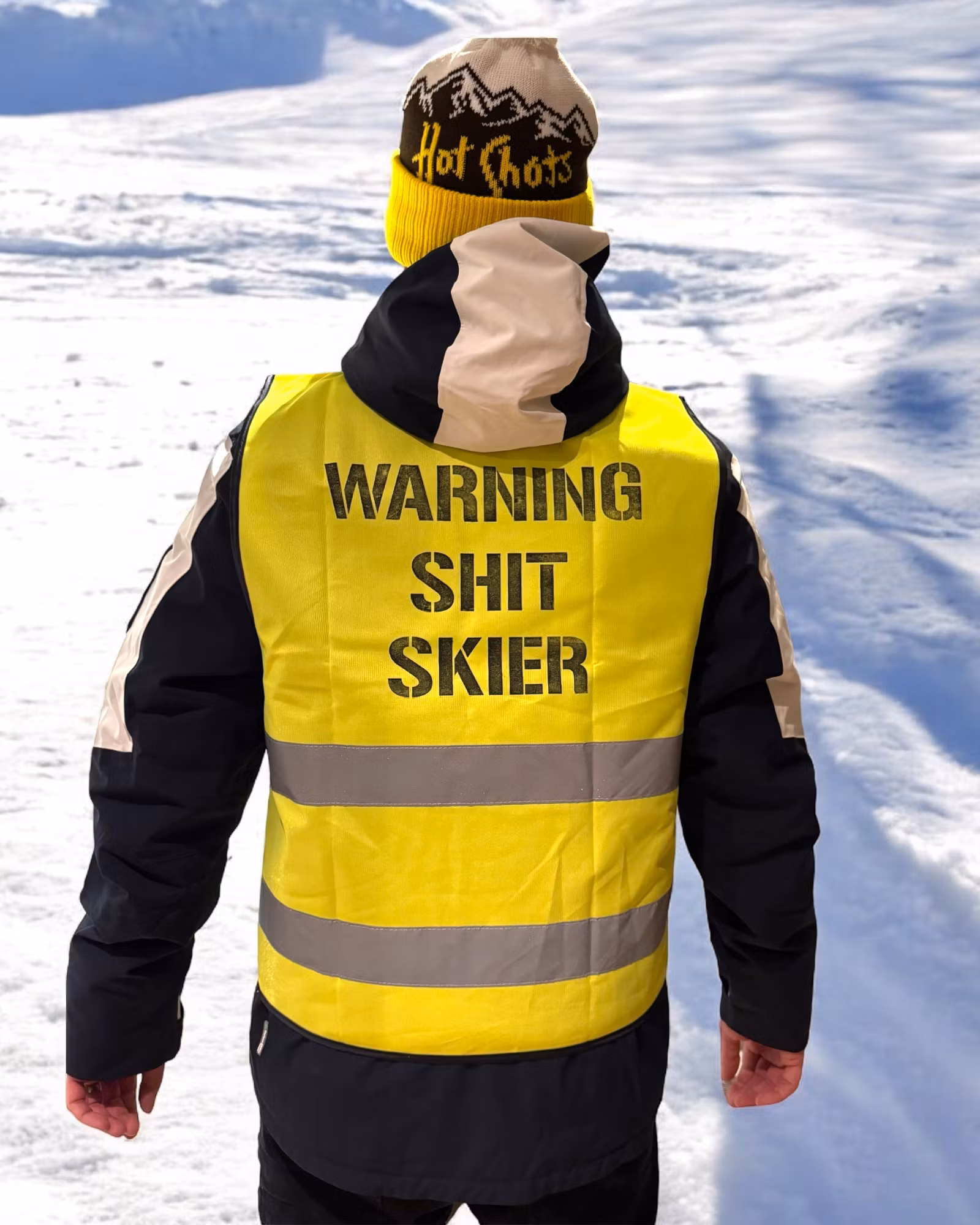 Farligast i pisten? Vem utgör en mycket stor fara i skidbacken? Varningsvästen till gruppens sämsta skidåkare eller till någon annan som man på något sätt behöver varna andra för. Oavsett i baren eller skidbacken...