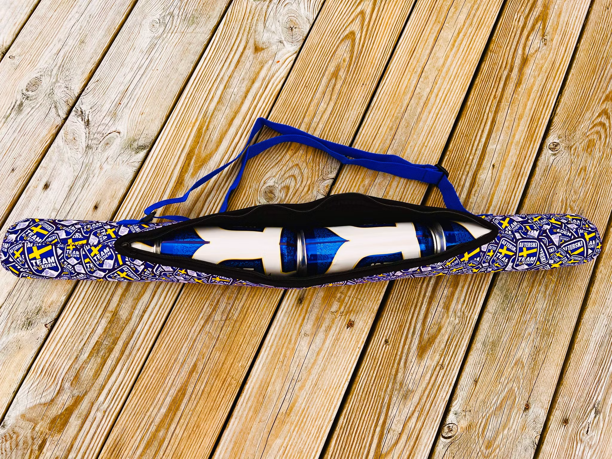 PATRONBÄLTET! Landslagets klassiska tubformade kylväska med vårt multilogo-mönster. Fyll på med önskade burkar och dra över axeln. Bra att ha med sig om törsten faller på. Rymmer 6st 33cl ölburkar av klassiskt format.