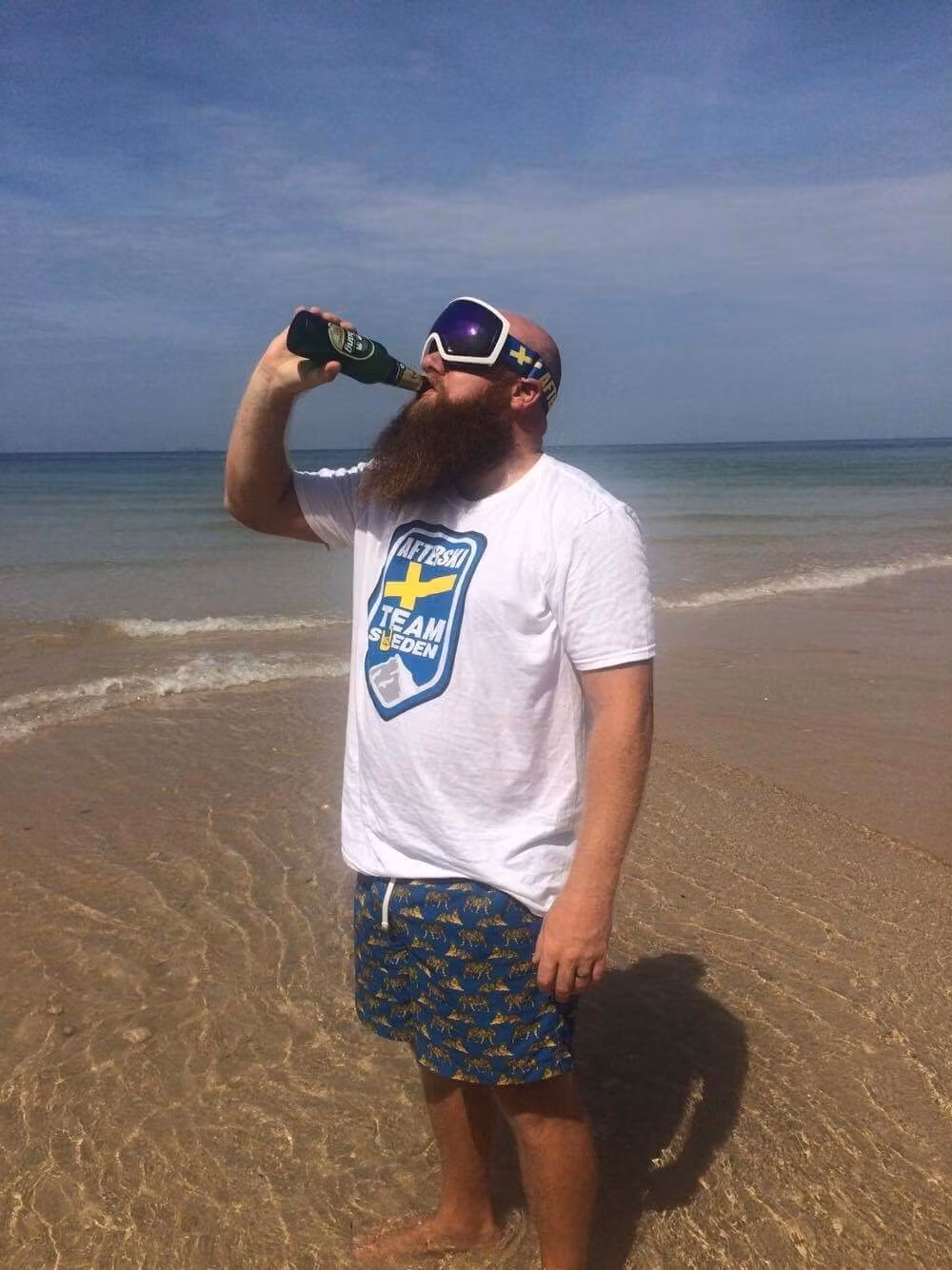 En av Landslagets populäraste produkter. Vit T-shirt med stort tryck på bröstet och litet i nacken på ryggen. Perfekt utanpå understället på afterskin.