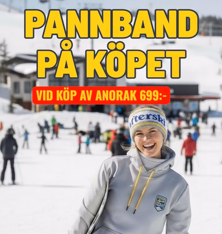 Afterski Team Sweden-loggor på bröstet, stort tydligt tryck på ryggen samt höger arm.